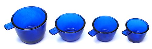 Cobalt Blue Glass Measuring Cup Set/4 - 1/4 cup, 1/3 cup, 1/2 cup, and 1 cup.