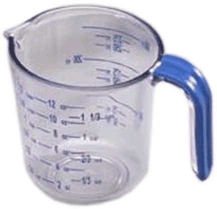 - Measuring cup with easy grip prevents slipping an
