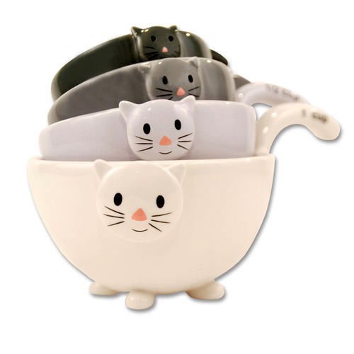 Cat Kitten Measuring Cups / Bowls for Baking, Black White Grey, Ceramic Feature